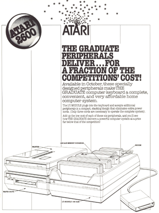 The Expander II had all the features of the Expander I and included its own 8K BASIC cassette program, Expander BASIC (though one press release stated it was built-in to the keyboard...), but allowed for optional devices to be connected (Expander Keyboard, Expander Printer, and Expander Modem). In addition, they had plans for optional equipment like a Speech Program, which turned the system into a Speech Text Synthesizer, along with a Home Improvement program, plus VideoComp Command joysticks. Note that the literature mentions a 64-key keyboard, but a 55-key keyboard is shown.