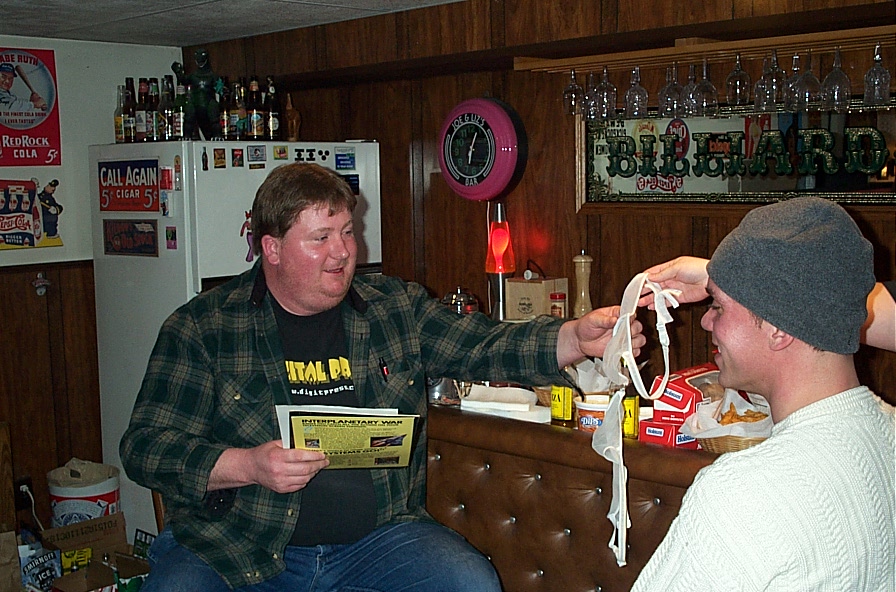 is given a perfumed brassiere in a trade. Who's bra IS this, anyway?