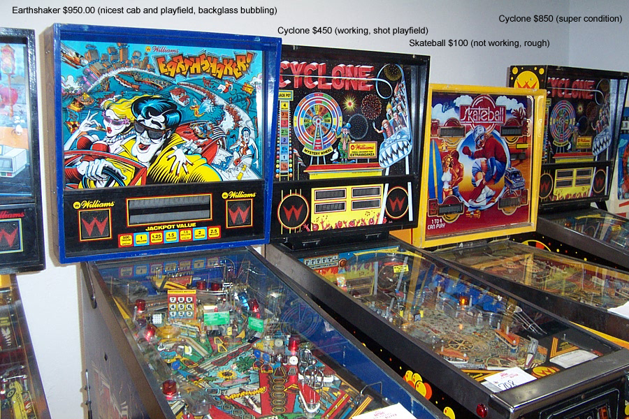 Earthshaker $950 (nicest cab and playfield, backglass bubbling)