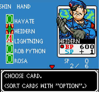 Playing cards isn't the only thing do in this world however. There are so many ways to kill time, it's practically disgusting. You can use your doubles in slot machines to earn more, use risky trade machines, trade cards, play a crane game, and even check out a few arcade games. No, you don't really play them, but check out some of the music. It's all been ripped out of different Capcom and SNK games (the Chun-Li tune is one of the best remixes). Some of the buildings are based off games from both of the companies, and a few off real life locations. Enough about the distractions, onto the cards. Each player can drop three cards into the playing field at once. You can attack or defend depending on the situation. Attacking ends your turn, but you can also pass if you choose to take no action. You'll also have an assortment of Action cards that perform various evil deeds to your opponent. Without getting too deep into the standard gameplay (this isn't a FAQ), you just need to be aware of how simple-yet-effective (and of course addicting) the basics of this game are. More cards are earned by beating any opponent or doing special tasks strewn throughout the game. Character cards are gorgeous and could be worth it to someone who (gasp!) doesn't enjoy the game. The RPG style world is filled with basic three color sprites, but the backgrounds are littered with details. The music, much like the above mentioned Chun-Li track, is great. A few of themes can be repetitive, but the stirring battle themes can't be turned down... they're simply that good.