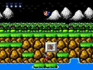 Mad Dog and Scorpion, two of the biggest bad-asses the world has ever seen are sent in to repel an alien invasion of the Earth. This really nasty alien called the Red Falcon has decided to make our planet his new vacation spot, but our heroes will make sure to send him packing. Taking place in 6 side-scrolling and 2 behind-the-back stages, the 8 levels of Contra could be the worlds true test of a gamers dexterity. These guys want our planet bad (though your never sure WHY they want it) and they throw every concievable weapon at our boys. Luckily, numerous weapons are available for the taking (sent via some type of flying contraption thingy) to fend off the evil beings, each with varying degrees of effectiveness. Of course, if you truly suck, there's always the Konami code which will give you 30 lives if it's inputted quickly at the title screen.