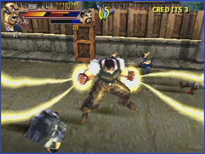 experience. You'll be hard pressed to believe the age of this system with this games awe-inspiring lighting effects and large characters. Special moves tear the screen apart, blinding everything looking in that direction. Though the backgrounds are slightly on the muddy side, the character designs make up for any of these problems. With your speakers turned up, the soundtrack goes overboard. The techno sounds fit this game SO perfectly, you'll more than likely take a few unwanted hits listening to the included music. The only issue here is the lack of any discernable sound when punching/hitting someone. Everyone knows that a side-scroller is successful because of the sound produced when collapsing a rib-cage, right? Obviously, the designers forgot this part. As such, it's hard to convey the impact of the hits, and the games loses some of the appeal it would of had otherwise.