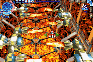 the innovative graphics engine alive. Switching from a ridiculous behind-the-ship viewpoint to a more traditional vertical showcase, Iridion II doesn't stray from the formula. The weapons system is a little interesting, offering a full array of weapons to be powered up through the stages, plus full selection before the struggle begins. Bullets are fewer in number, excluding the bosses. The biggest threat comes from opposing ships smashing into your hull. That makes the boss fights a fantastic battle each time, leaving little room for mistake, and as is the case with the final adversary, sometimes completely ridiculous. There are those moments strewn about in the game where there is no avoiding taking a hit, and on the hardest difficulties, that's just not acceptable. Still, when the game is flowing as it should, it's an intense firefight, and creating a situation like that on a portable screen is hardly an easy task. Part of that does come from the graphics engine, featuring a