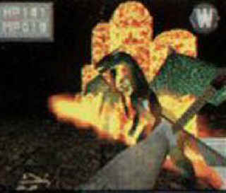 fan, will give you my Point of View about this game. Naotoshi Zin, the man responsible for the King's Field series (And I believe the Armored Core series as well), now comes in with the second (but third in Japan) installment, King's Field II (referred to as King's Field III in Japan). In this King's Field adventure, you now take control of Prince Lyle (his full name is Austin Lyle Forester), and you must strike down your father, Alfred (the King) who is responsible for bringing evil upon the island of Verdite, his kingdom was sealed by Alexander, the Hero of the First KF, after he went evil, and soon collapses on the ground dead. But the barrier is about to breach, and you must hurry before Verdite is veiled in darkness. Leon Shore (If you played KF1, you should know him because he made the Dark Slayer for you to beat the last boss) sets you out on your quest with some meager armor, a light spell and the weapon "Excelletor". While the story isn't that ground breaking, it wasn't the real goal of this series anyways (although the Main goal is a little clearer). This, as you possibly may know, is a FPRPG (First-Person Role Playing game) that plays in real time, meaning you only see the outside environments, the things around you, and the arm that you see swinging when you attack with your sword. but whether this is a good thing or a bad thing is up to you. The Graphics are surprisingly great for its release, sporting vast 3D environments with 3D enemies, people, and some 2D and 3D objects. A big plus is what they fix from the first King's Field, which had outside environments that looked like dungeons, the sequel fixes that, the outside world actually has rolling hills, rivers, bridges, and more paraphernalia (Bones, dead bodies, broken carts, etc.). The Colors are best described as earth tones; blues, browns, grays, greens, etc. and they do seem to add a more realistic feel to the game. The Dungeons are also improved, they're more diverse than the predecessor, by showing more designs and colors to keep the diversity. Another thing about the graphics is the monsters, which range from Man-Traps and Skeletons to Stone Knights and Demon Lords, some returning favorites come back as well (skeletons, head-eaters, Demon Lords), and the animation of the monsters is very smooth. Same goes for spells, Tornado actually looks like a Tornado, wreaking destruction in its path, and fireball is just what it looks like as well. The FMV looks great too, although there are two scenes, they are rather detailed and very smooth. There are some good cut scenes here and there that are a pretty good treat. But its slightly marred as the graphics have a somewhat grainy look to them. When up close to a tree (2D object) or walls, they tend to pixelize up close, mainly because of the color schemes used. in some cases, the items tend to blend in and you will end up having a hard time finding them, even if you read a walkthrough, as you will possibly pass them several times before actually noticing them, and some environments look slightly bland, possibly one or two, but it still doesn't hurt the natural feel of the game. The really incredibly strange part about this game in terms of graphics, that tend to be a bit grainy and gritty, is that when you play this game longer, the better it looks overall. This unbelievably strange phenomenon seems to happen to other players of this game as well, as the game somehow smoothens out as you are drawn into this adventure. Strange indeed... The sounds are pretty much right on with this game, but its definitely not something new. Monsters still have the attack, hurt and death cries. The same goes for your attacks, the typical 'whoosh' sound your sword makes when you swing it, and the burning sounds of you blasting out a fireball. But this is more effective as the sounds tend to echo throughout the dungeon, and you're going to be in for a real treat if you use surround sound, as the sounds of creatures behind actually come out from the real speakers, this helps the realistic feel. This is also a good strategy to find secret doors and areas throughout the game as they make some normal sounds as well. The music isn't spectacular, but it does its job, rather well too. Simple, catchy tunes that fit the scene for that particular area. There isn't really much to speak about the music, but I do admit that there are a few tunes that stood out from the crowd. As I previously mentioned in the review, that the game's story isn't really its highlight, but it can be surprisingly good. With the journal system, you can trace back your conversations with some of the NPC's of King's Field II, some giving clues and tips, and some telling about the storyline. By gaining enough information, the Storyline can actually be rather surprising if you want to pay that much attention to it. The NPC's though aren't really a surprising bunch, but there are a few who do stand out. Mark Johnson, the appraiser, tells a few jokes that might seem humorous if you're in the mood, and there is Lyn Reinhardt, the female elf merchant, and childhood friend of Lyle, who actually has quite the tale to tell, but she also has the sad end. Lyn is possibly the character you might actually care for, and there is no other NPC that dares come close. The gameplay is basically the backbone here folks. It's either you love it, or you hate it basically. Combat isn't really what you expect if you're new with this game, but too the new gamer, it goes like this: "You reach your opponent, try to strike him with your sword, and the monster attacks back, you back off, regain your strength, and go in for another attack". It may not sound that pleasing, and more a turn off for people if they're expecting a orc-gutting gore fest, but if you can tolerate this, it can be fun. You have your basic HP and MP gauges, and there is a bar below them, the Red is power (below HP, and the Blue is magic (below MP). Red is how hard you swing, you can swing r