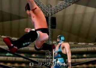 representation of their favorite "sport." From the start, the games intro throws great action highlights from the world of New Japan at the player. This is the type of high flying action that should be featured in the game. Unfortunately, the stiff gameplay does not allow for this style to be showcased properly. The gameplay's closest equal is WCW Mayhem. Simple button presses can pull off even the most complicated maneuvers, but much of the federation's style is lost in the translation. Simplistic looking moves tend to be pulled off more often than they should, regardless of whether or not you want them to be. Weapons can be found in the audience, but after extensive play, the only one found is a steel chair. For those who know Japanese, the create-a-wrestler mode will prove to be a valuable ally in your quest for Japanese gold. The career mode is a basic romp through all of the wrestlers and eventually fighting the champ.