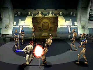Adrenalin pumping intros are the norm for this company, and this game is no exception. Unfortunately, this is the games highlight. The look of the game is marred by its low resolution, resulting in one of the most pixelated games in the history of Playstation. The backgrounds are a mess with muddy and dark colors hiding any detail the designers have implemented. This makes some jumps an impossibility since you can't see where the platforms begin and end. The stiff animation slows your character down to a crawl as attacks must cycle before another begins. This is where things fall apart. The sluggish feel to the controls are bad enough when attacking. When trying to complete complicated, nearly hidden platform jumps, it's ridiculous. Boss battles suffer the worst, and if you're lucky enough to traverse the levels to combat them, you won't make it out alive. Of course, the music is always a saving grace in any Star Wars game. All of the sounds have been ripped right from the film and the soundtrack composed by John Williams is represented flawlessly. "Duel of the Fates" adds some needed power to the action, but doesn't stop the aggravation.