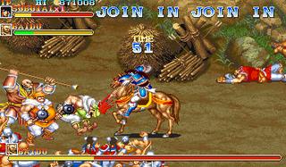 At the very least, you have the soundtrack to fall back on. Each stage has its own theme, perfectly suited to the period. It has a nice orchestrated feel and stage six offers the best fighting music in game. Punches and sword slashes connect with either a brutal whack or a deep slice. It's satisfying enough to make the feelings of those hits complete. Like most beat-em-ups, this game really needs to be played with all the available slots used. It's not particularly difficult and it's even easier with three players. Those ten stages will fly by if you're brawling in a group. It's not that the game fails to provide a decent one-player experience, it's just that with everyone slashing away, it gives it a fantastic epic feel. Convincing someone that this is better than Dynasty Warriors, well, that could be a problem. |